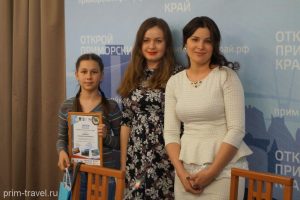 - Специальным призом за разработку турмаршрута была отмечена работа Елизаветы Щерблюк («Маршрут по Лазовскому району»), за оригинальный подход – работы Анны Ченцовой («Proud of you, my native land!») и Виктории Листровой («Я люблю Приморье»).