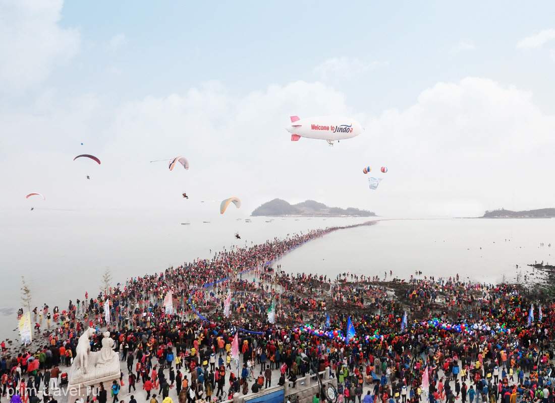 Фестиваль «Дорога по морю» на острове Чиндо вновь ждет туристов. Пройти «дорогой Моисея» могут любители путешествий, мистики и восточной культуры из разных стран. Это фестиваль из года в год попадает в перечень самых лучших фестивалей Республики Корея.