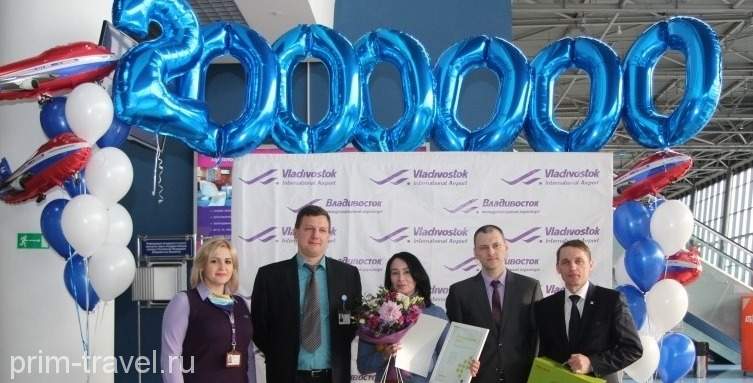 От аэропорта Владивосток 2-миллионный пассажир также получил сертификат на годовое обслуживание в бизнес-залах воздушной гавани. Представители авиакомпании подарили авиапутешественнику льготный билет на авиаперелет в любом направлении маршрутной сети S7 и модель самолета.