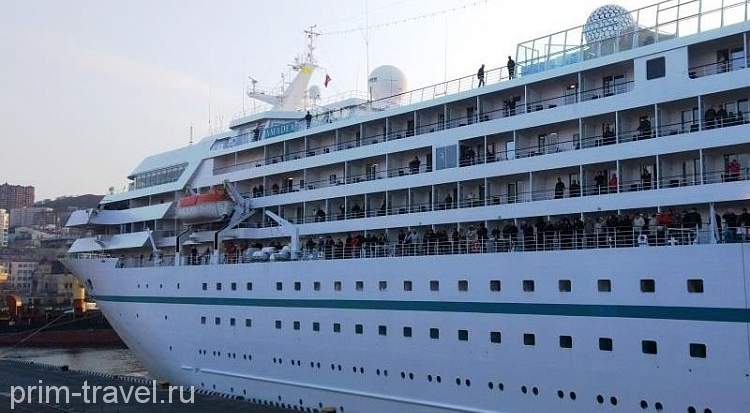 «На борту лайнера находится около 600 туристов из Германии и Великобритании. Для них на нижней площадке Морского терминала организована ярмарка национальных товаров и установлена стойка Туристско-информационного центра, сотрудники которого в течение дня будут рассказывать гостям о самых интересных и познавательных турах по нашему краю», – отметили во Владивостокском морском терминале.