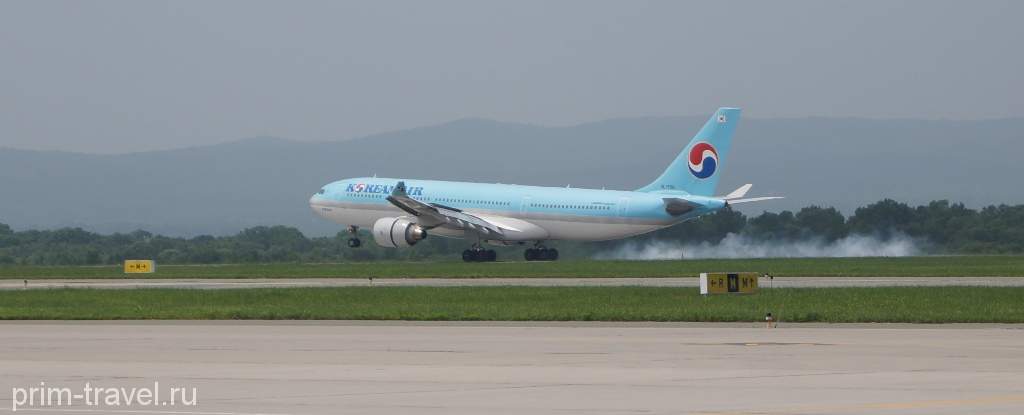 Рейс Korean Air КЕ 982 вылетает из Владивостока в 1.:10 и прибывает в Сеул в 16.50.
