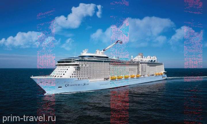 Лайнер Quantum of the Seas на сегодня является третьим по величине во всем мировом круизном флоте – длина 348 метров, ширина 41 метр, 14 палуб, 1300 человек экипажа, 2090 кают, может брать на борт до 4900 пассажиров. Как только судно сошло со стапелей, ему сразу присудили премию «Лучший новый лайнер 2014 года». «Квант морей» постоянно базируется в Шанхае и выполняет короткие 4-5 дневные круизы.