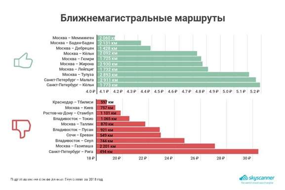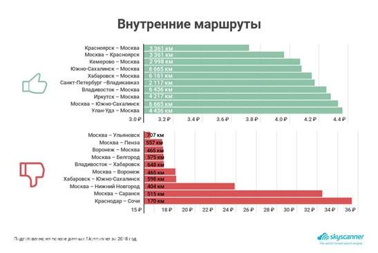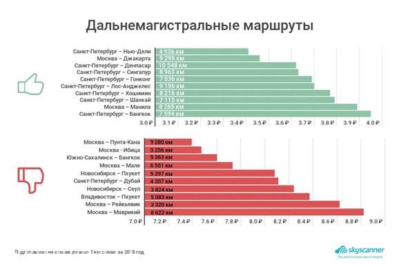 Skyscanner составил рейтинг маршрутов для тех, кто хочет улететь дальше за свои деньги. Эксперты сайта для поиска авиабилетов, отелей и проката автомобилей Skyscanner сравнили 500 популярных рейсов из России и определили маршруты для тех, кто хочет улететь дальше за свои деньги.