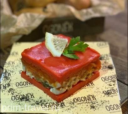 «Мы включили в фестивальное меню навагу под маринадом. Это традиционное дальневосточное блюдо, которое все мы знаем с детства — рассказывает шеф-повар фермерского ресторана «Огонек» Евгений Березнюк. — Но мы хотели показать нашим гостям, как красиво может быть представлено наше любимое блюдо, как его можно адаптировать для подачи в ресторане, поэтому придумали подачу с желе, приготовленным из того же маринада».