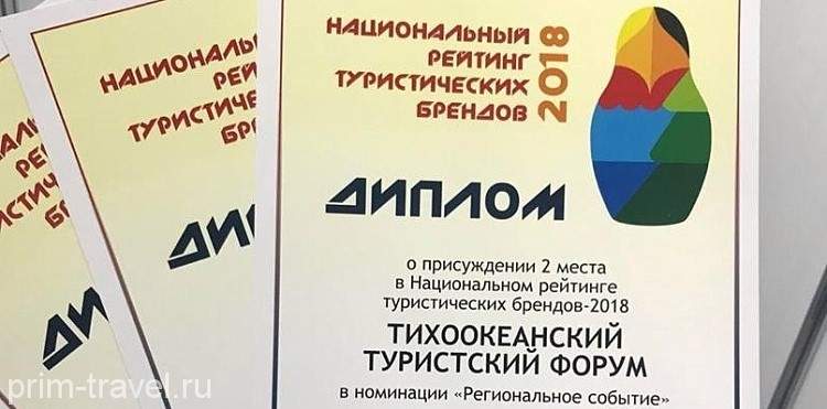 В номинации «Региональное событие» Приморский край занял второе место с Тихоокеанским туристским форумом. Ежегодное мероприятие проводится на острове Русском и объединяет на своей площадке российских и зарубежных экспертов в сфере туризма. Кстати, в этом году форум станет еще масштабнее, в программе уже заявлены: международный молодежный конгресс, выставка PITE, фам-туры, лектории, а также международная выставка катеров и яхт Vladivostok Boat Show.
