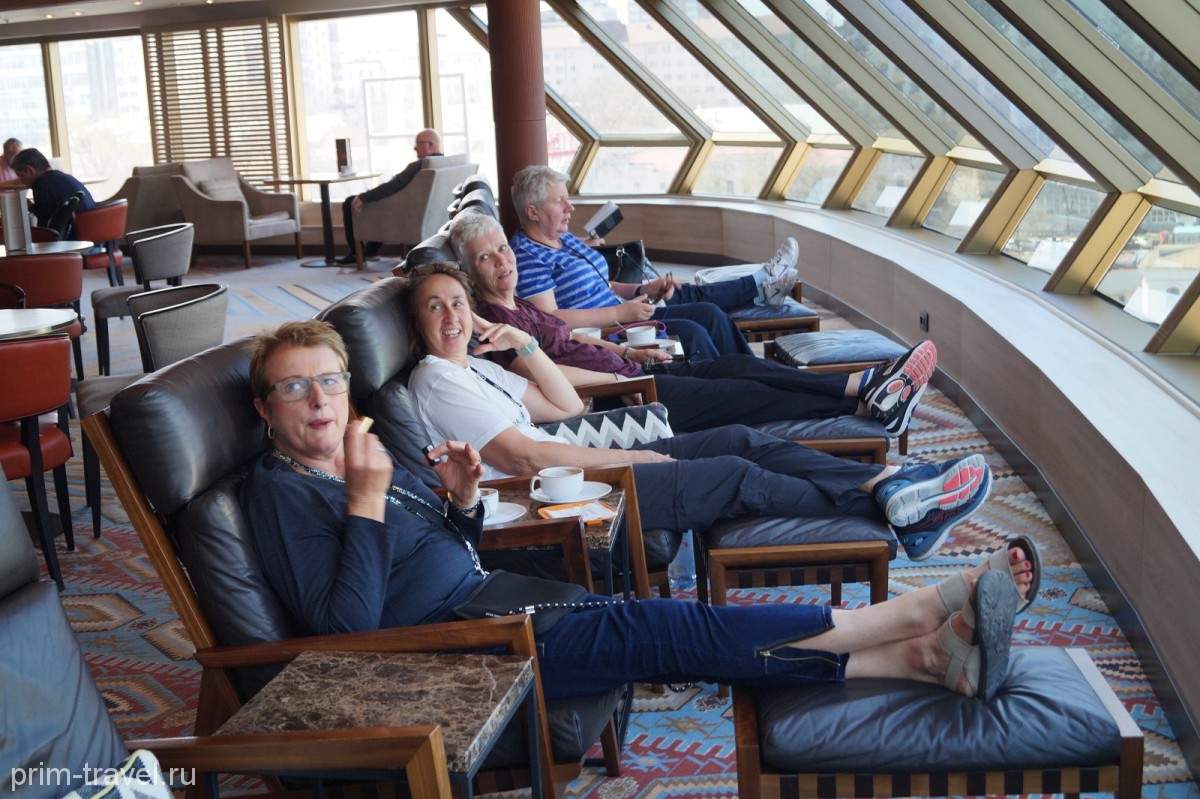 На борту 1900 пассажиров – туристов из Австралии, США, Канады, Новой Зеландии и Японии. Туроператор, продающий круизы на судно, в своей работе стремится к 100-процентой загрузке лайнера. Так пояснил капитан, согласившись, что это было бы идеально. Но на самом деле средний загруз в рейсе составляет почти 98%. И это тоже очень высокий показатель. От общего числа пассажиров почти 90% выходит на берег.