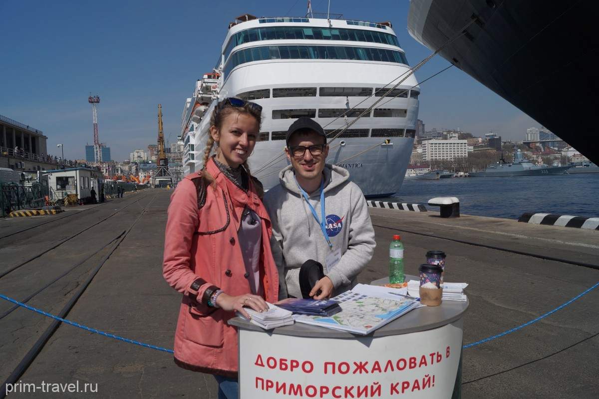 Для туристов, которые решили познакомиться с городом самостоятельно, в помощь была информационная стойка ТИЦ. «Карты центральной части города на английском языке с указанием мест посещения, банков, кафе, туристы разобрали буквально за 15 минут. Втроём разошлись гастрономические путеводители. Люди спрашивали по объекты, которые находятся рядом с морвокзалом — кафе, сувенирные магазины, пункты обмена валюты. Интересовались недостроенным храмом на центральной площади Владивостока, спрашивали, как долго его сроят и почему еще не открыли. Но чаще всего задавался вопрос по рыбный рынок», — рассказывает сотрудник ТИЦ Виктория Дмитриева.
