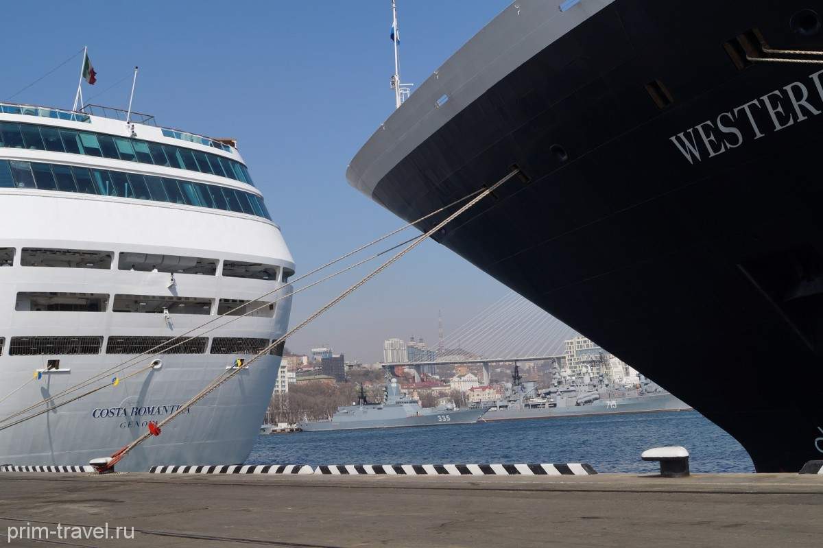 Сразу два крупных лайнера — Westerdam из новеньких и уже хорошо известная владивостокцам Costa NeoRomantica пришвартовались у берегов Приморья. И хоть это не первый случай, когда два судна стоят у причальной стенки морвокзала, но и до постоянства пока далеко. Сегодняшний день – это своеобразное тестирование работы всех служб. Могут ли обслуживать параллельно два судна? Ответ однозначный. Город настроен развивать круизный туризм. Следовательно, все должно быть учтено, никаких тонких мест, все службы должны работать слажено.