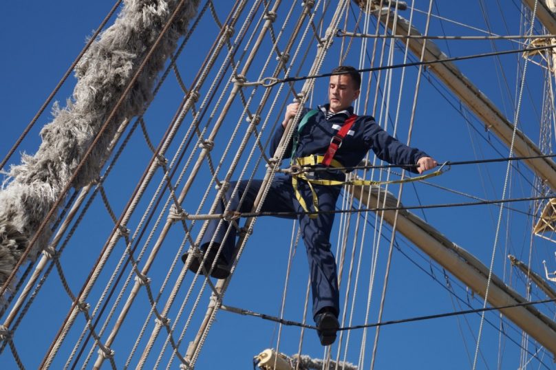 Но это чуть позже, а пока гости учились на скорость и правильно одевать страховочные жилеты, соревновались в этом с курсантами, перетягивал с курсантами канат, пытались освоить азы вязания узлов. Булинь, восьмерка, штык, штык со шлагом — морские узлы и сегодня считаются настоящим искусством. Навыками мастерства их правильного вязания и уместного использования в конкретных случаях должен обладать каждый, кто выходит на водные просторы под парусами