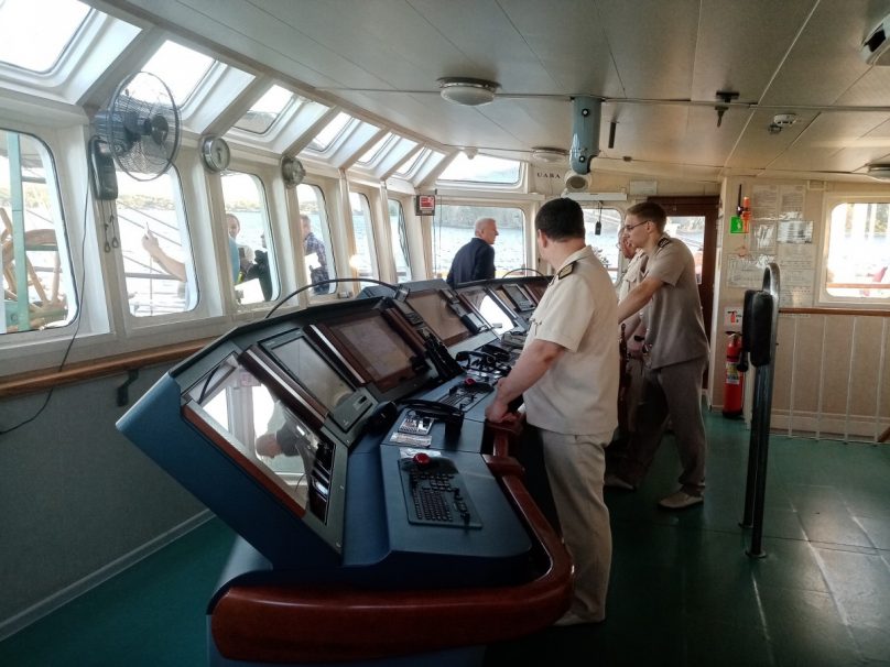 Всех туристов еще до подъема на борт разбили по группам – различались они по цвету бумажных браслетов на руках. У каждой группы были свои «няньки», «учителя» или «экскурсоводы». На каждую группу пришлось по два курсанта. Ребята рассказали и показали, как протекает их жизнь на борту парусника». Провели по судну, продемонстрировали свои кубрики. В каждом кубрике размещается 12 курсантов, но как говорится в тесноте, да не в обиде – именно в таких условиях проверяются отношения, их прочность. А дальше «по курсу» были кухня и столовая (посуда пластиковая, чтобы не билась, а к столам прикреплены специальные бортики, чтобы тарелки во врем качки «не выпрыгивали» на пол»), учебный класс, пост дежурного, кают-компания, рассказы о походах судна, о вип-гостях, которые поднимались на борт фрегата.