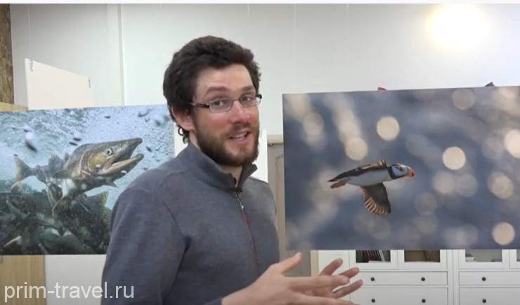 Все снимки отражают авторский стиль Натана, отличающийся живописностью и умением поймать яркий момент в сложных для съемок условиях. В видео-экскурсии Натан рассказывает гостям о своем опыте природной фотографии и о каждом из героев его выставки, будь то беринговский песец, тундряная куропатка или монгольский зуек. К примеру, на один удачный кадр лососей, выпрыгивающих из воды (заглавное фото), автору понадобилось три дня. А для фотографии тупика в контровом свете он провел долгие часы на вершине холма у лежбища. Там он нашел идеальные условия для снимка птицы, летящей над искрящимися под солнцем волнами.