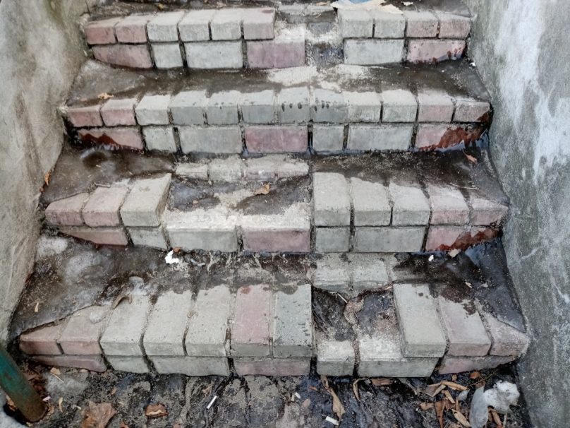 Сегодня там неухоженный склон и две лестницы – это своеобразное связующее звено двух частей улицы Пологой. Вид нелицеприятный – подпорная стенка вздувается от воды, самопальная ливневка не решает проблемы, ступеньки полуразрушены, зимой они покрыты льдом и даже в начале весны преодолеть это препятствие без вреда для здоровья мало кто рискнет, следы ливневого ноябрьского дождя по-прежнему на самом видном месте.