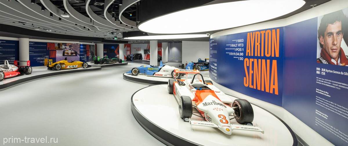 Одной из жемчужин музея является выставка гоночных автомобилей, среди которых есть болиды, участвовавшие в самых первых заездах Макао Гран-При. Один из этажей посвящен мотоциклетным соревнованиям Гран-при Макао: в знакомстве с ними поможет большой интерактивный дисплей и мотоциклетный заезд в виртуальной реальности. Выставка на минус-первом этаже посвящена заездам Macau GT Cup и гонке Guia. Все выставочные пространства оснащены интерактивными экранами и ограниченными возможностями здоровья.