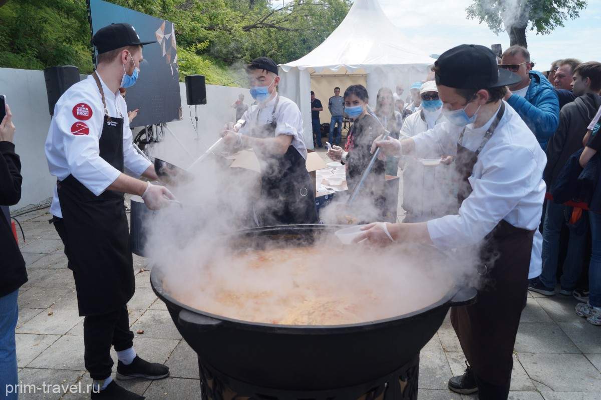 А в специальной зоне команда в составе ТИЦ Приморья и паназиатского ресторана Zuma под «командованием» су-шефа Дмитрия Пака в 225-литровом казане готовила знаменитый тайский супчик том-ям. Все-таки известная в Азии игра в Го и проходящий в эти дни во Владивостоке чемпионат мира обязывают. Более того, Владивосток – это первый европейский город в Азии, принявший такое масштабное мероприятие.