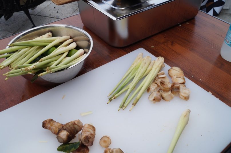 Народ начал выстраиваться в очередь с момента растопки печки и подготовки всех ингредиентов. Можно сказать, что стойко ждали все два часа, пока готовился самый популярный суп Таиланда и Лаоса. Но эта «стойкость» была наполнена различными активити — перечисляли ингредиенты супа, пытались отгадать вес продуктов, признавались в своих чувствах к этой острой похлебке и т.д. В общем, скучно не было.
