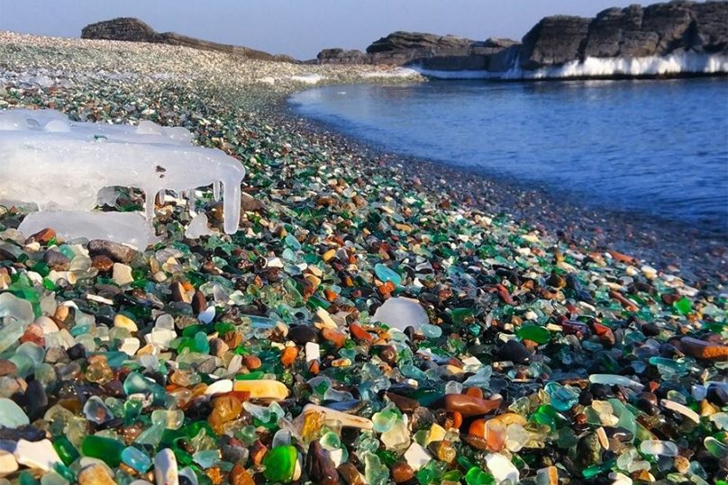 Легендарная бухта Стеклянная находится всего в 25 минутах езды от Владивостока. Она известна далеко за пределами Приморского края своей необычной красотой. Вместо привычных песка и гравия ее берег усыпан кусочками цветного стекла, которые тщательно отполированы морской водой. История Стекляшки, как называют это пляж местные, не очень романтичная: сюда сбрасывал отходы завод по производству стеклянных и фарфоровых изделий. Предприятие закрылось, а бывшая свалка превратилась в одно из самых фотогеничных мест региона.