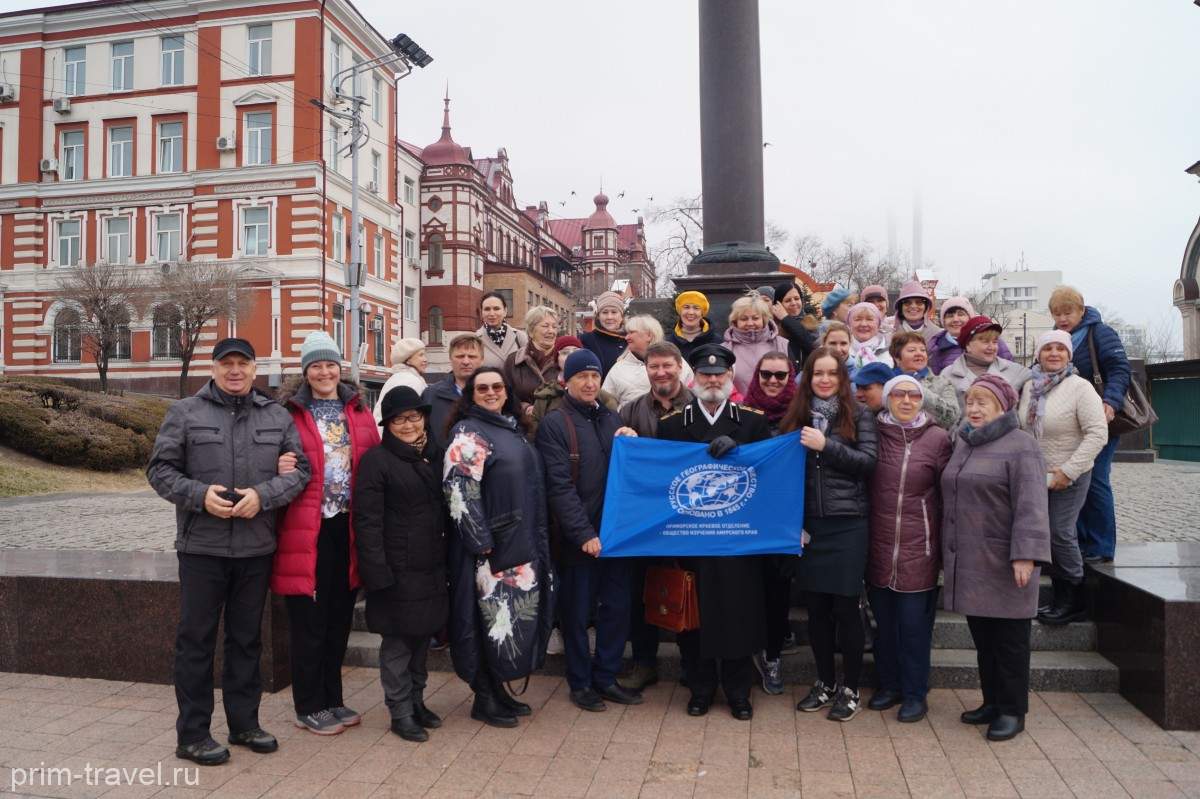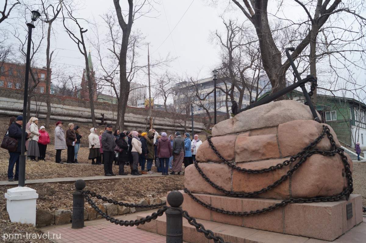 Экскурсия берет начало на центральной площади Владивостока возле стелы, являющейся символом воинской славы города. И неспроста. Ведь в истории города у моря много имен и страниц, которые создали ему славу восточного форпоста России. Сама флотилия берет начало в 1856 году, база– Николаевский пост (г. Николаевск-на-Амуре). Правда, иностранцы скептически относились к этому формированию на Тихом океане – порт не имел глубоководных подходов, протяженный длительный ледостав, значительное удаление от южных районов Дальнего Востока. И в 1871 году главный порт Сибирской флотилии «переехал» во Владивосток. И уже через год Владивосток стал основным пунктом базирования флотилии, в составе которой насчитывалось около 20 кораблей. Корабли Сибирской военной флотилии несли дозорную службу, проводили гидрографические работы, основывали военные посты на побережье Японского моря. В 1875 году Владивосток официально было объявлен городом, ему был присвоен греб, на котором тигр (хозяин тайги) держал за рымы два скрещенных золотых якоря. Герб символизировал неразрывную связь Владивостока с флотом, мореплаванием. Тогда же началось планомерное гидрографическое изучение дальневосточного побережья. Специально созданная организация занималась прежде всего составлением точной карты залива Петра Великого и обобщением результатов произведенных ранее обследований и съемок побережий.