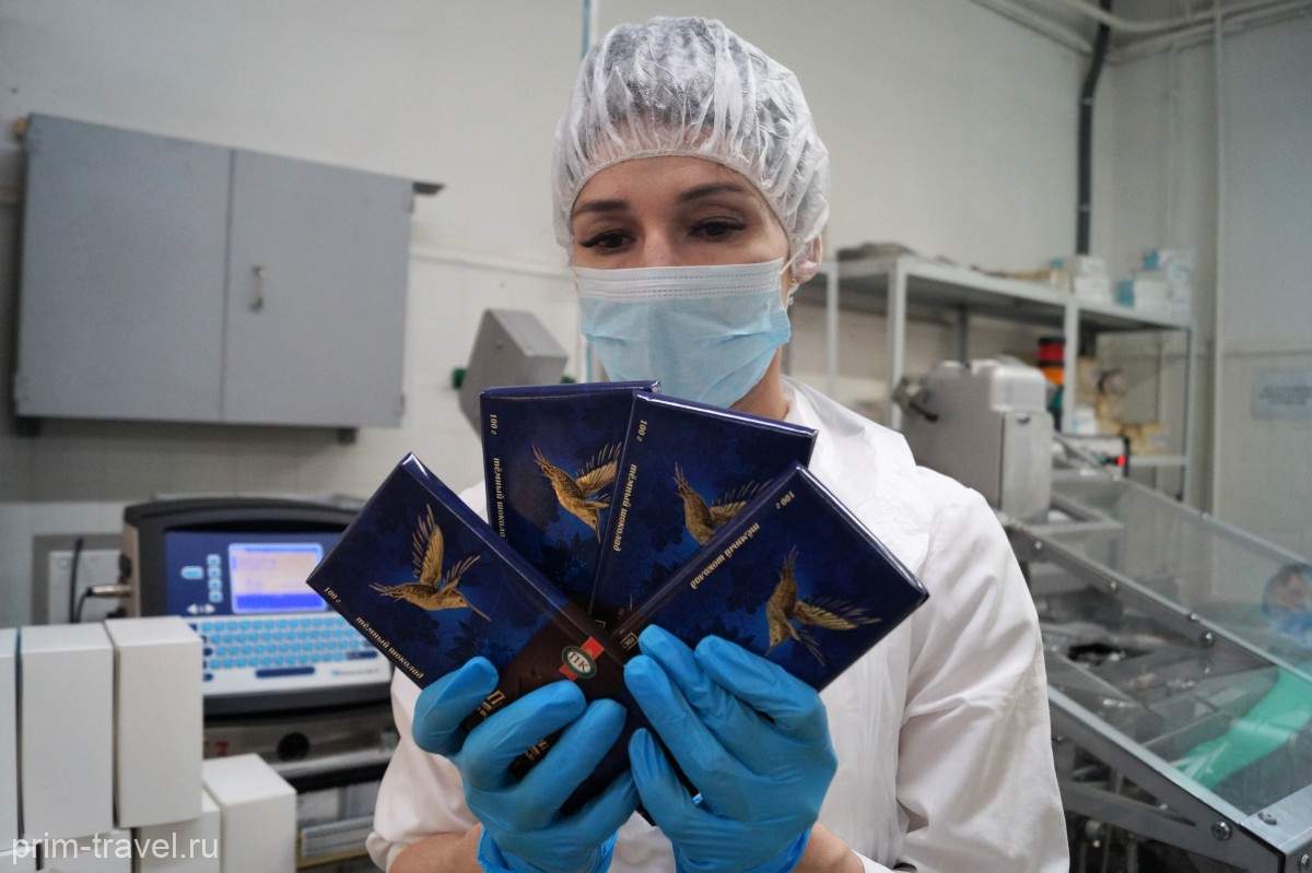 На предприятии нынче работает чуть более 500 человек. Производят конфеты, в т.ч. и ручной работы, шоколад, зефир, печенье. Корр. Prim-Travel увидел процесс сладкого производства собственными глазами.