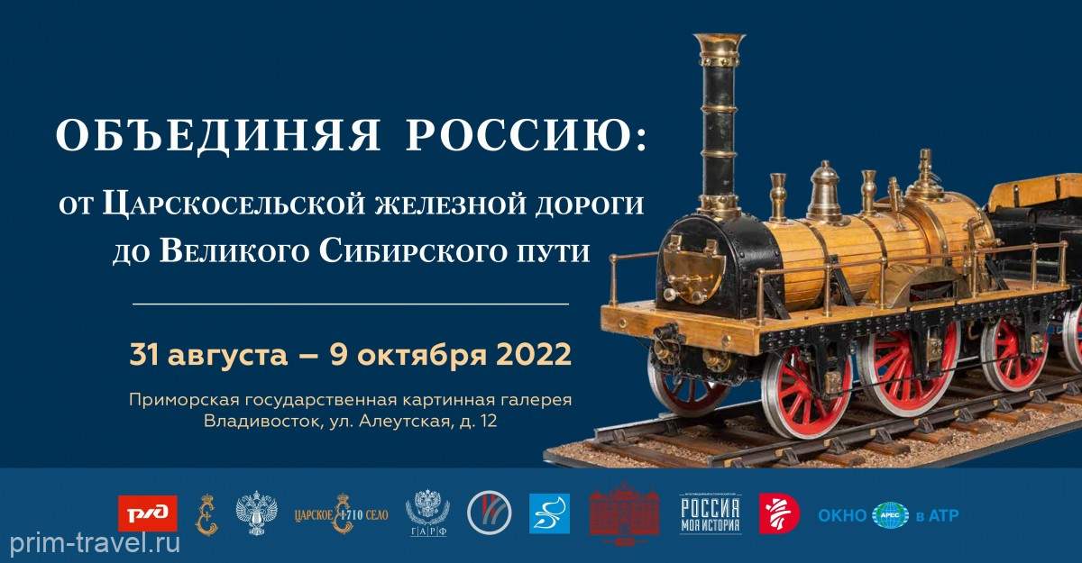 Выставка «Объединяя Россию: от Царскосельской железной дороги до Великого Сибирского пути» объединила в себе две знаменательных даты для России. Это 85-летие открытия первой в России железной дороги — Царскосельской и 130-летие основания Транссибирской магистрали. Масштабный передвижной выставочный проект представлен в залах Приморской государственной картинной галереи.