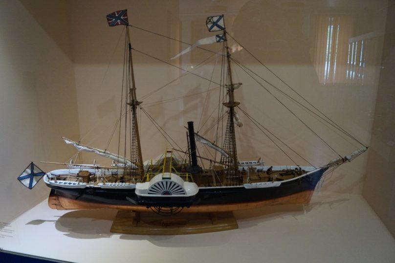 История про Александра Болтина начинается в музее Находки. Участники экскурсии видят уже Александра Болтина в почтенном образе, после службы он проживает в Одессе, где служит брандмайором Одесской пожарной бригады. Помимо службы каперанг в отставке продолжает рисовать. Это его хобби, которому он не изменял всю свою жизнь. В море он делал рисунки новых берегов, а осев в Одессе, не бросил это дело. И чаще всего его ностальгическая кисть отображала тот самый пароходо-корвет «Америка», которому было отдано семь лет службы. Кстати, когда Болтин принял командование «Америкой», ему было всего 26 лет.