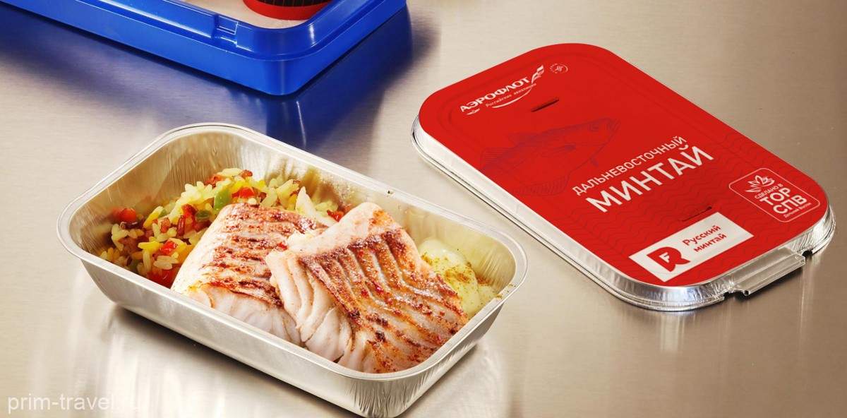 Пассажиры могут попробовать блюда, приготовленные из натурального филе минтая. Меню «Аэрофлота» включает рыбопродукцию резидента приморской ТОР.
