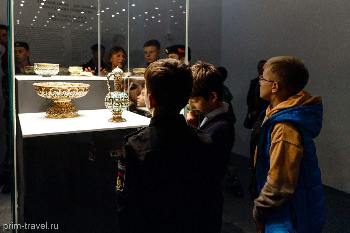 Выставка «Царь Пётр Алексеевич. Накануне империи» проходит в здании Музея-заповедника истории Дальнего Востока имени В.К. Арсеньева. Последний день работы – 15 января. Сказать, что выставка чудесная, интересная, увлекательная – это ничего не сказать. Четыре зала: «Детство», «Два царя», «Драгоценное достояние государева семейства», «Истинный государь». В каждом представлены свидетельства важнейших исторических событий, бесценные произведения искусства из древней царской сокровищницы, прямым наследником которой являются Музеи Московского Кремля. Знакомиться с экспонатами надо с экскурсоводом, и тогда погружение в историю на глубину почти трех с лишним столетий будет полным. В залах собраны не просто безликие экспонаты, а настоящие реликвии Музеев Московского Кремля. За каждым предметом, будь то картина, книги, посуда, оружие или одежда, просматривается история страны последней четверти XVII столетия. Именно тогда закладывались основы будущего величия России. Часть представленных экспонатов ранее не показывали вместе, а какие-то вообще впервые предстали пред зрителями во всем своем историческом и художественном великолепии.