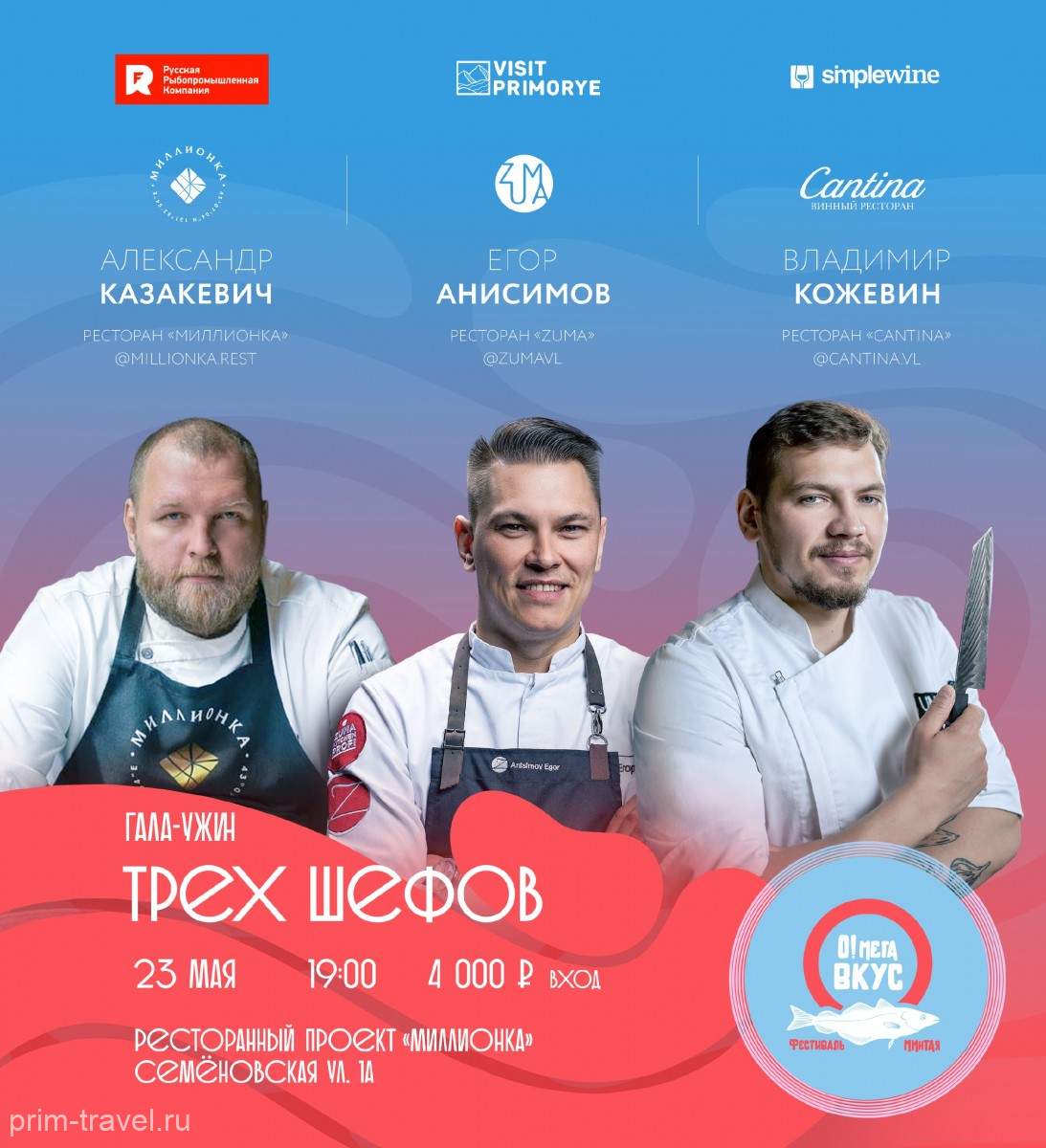 Самое масштабное гастро-событие мая — гала-ужин от 3 лучших шеф-поваров Дальнего Востока. Мероприятие состоится в рамках фестиваля «О! Мега Вкус».