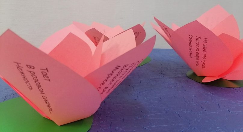 Кстати, весь «жизненный путь» лотоса можно увидеть на удивительной фотовыставке «вернисаж лотоса», которая проходит в краеведческом музее Спасска-Дальнего. В экспозиции представлено 50 фотоизображений лотоса, авторами которых является четверка из народного фотоклуба «Дилетант» — Виктор Егоров, Людмила Коноплёва, Вячеслав Коробов и Юрий Яроцкий. Но взглянуть на лотос можно не только через кадр объектива. Можно попробовать сформировать цветок в технике оригами или ощутить силу слова и красоту этого цветка в японской поэзии. Всего три коротких строчки, но очень емко и образно.