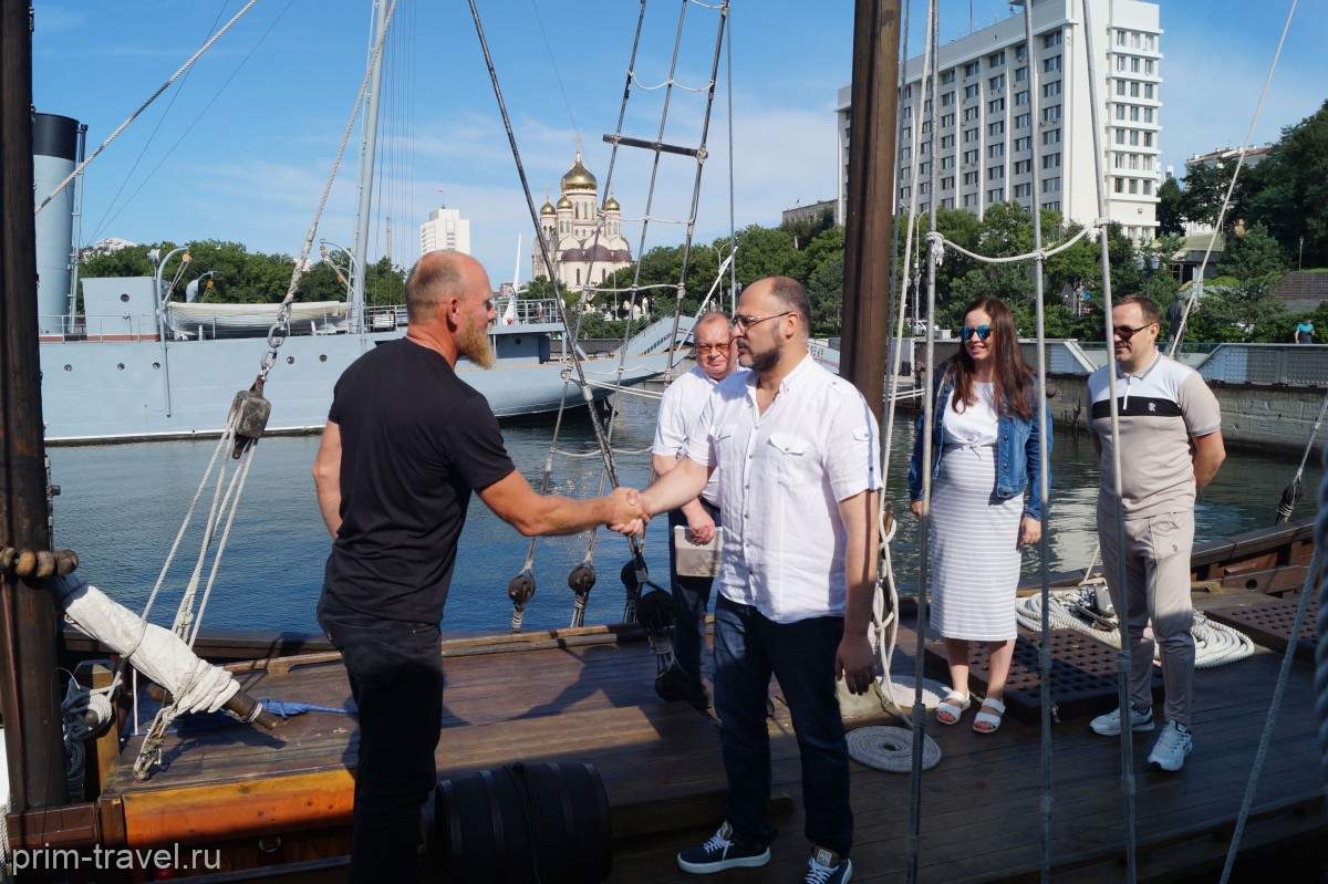 «Очень тронуло, как капитан судна Сергей Синельник высказывался о нашем городе. Видел много, прошел полмира и о Владивостоке говорит с большим теплом. На своем примере ребята наглядно демонтируют, что в мире многое возможно. Наверное, практически всё. Главное – уверенно идти к своей цели и слушать только свое сердце. Сергей рассказал, что он не только любит море – за его плечами и покорение пустыни, и путешествия на мотоциклах. Думается, такой пример обязательно вдохновит владивостокских мальчишек», — рассказал по итогам визита на парусник Константин Шестаков.