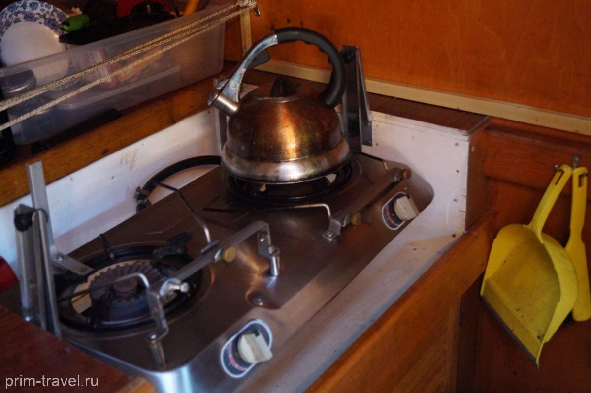 Если говорить о кубрике, то особо не развернешься. Койки, что называется «плечом к плечу». Сами члены команды говорят, что о психологической совместимости думать некогда. Во-первых, все люди взрослые, во-вторых, все понимают куда отправились, а в-третьих, и дел с избытком. В общем, на ленивую прогулку на яхте совсем не похоже. Отдельные каюты у капитана и боцмана, но и там – зашел и сразу лег, шагами мерять нечего. Разве что палубу. А там, чтобы удержаться, по борту пущены специальные тросы, за которые цепляешься карабином. И тогда при волне в море не смоет – это точно.