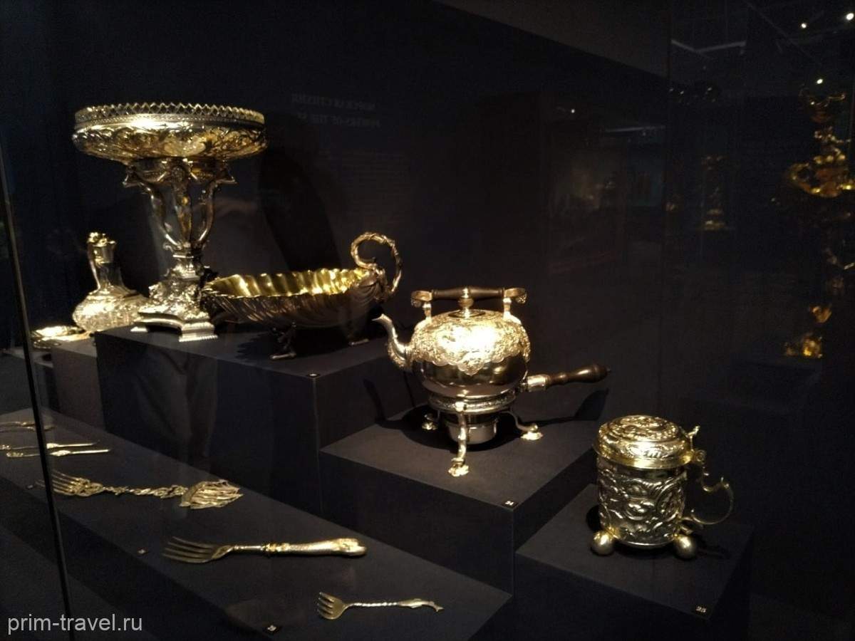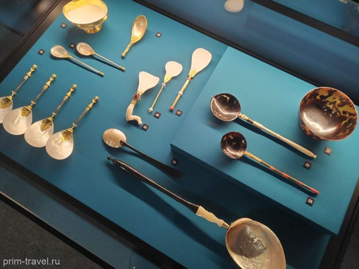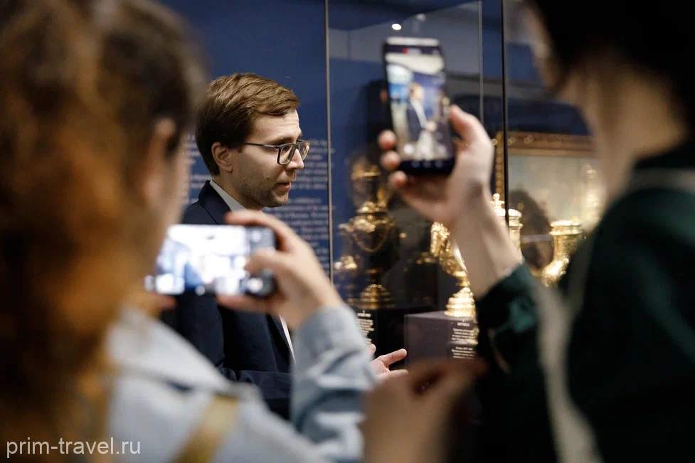 Уникальные экспонаты Музеев Московского Кремля вновь украсили залы Музея Арсеньева. Название выставки «Покорители морей и дары океанов в памятниках Музеев Московского Кремля». И это уже пятый совместный проект федеральных музеев. Открытие вставки пришлось на дни работы ВЭФа. В залы заглянули статусные персоны, в т.ч. и руководители компаний, благодаря которым выставка состоялась. Это «Новатэк» и «Совкомфлот». Ведь проведение такой выставки, где в экспозиции представлены почти 180 уникальных экспонатов из залов Оружейной палаты, запасников музеев Кремля – удовольствие не из дешевых. Специальная транспортировка, перелет на другой конец страны, страховка…
