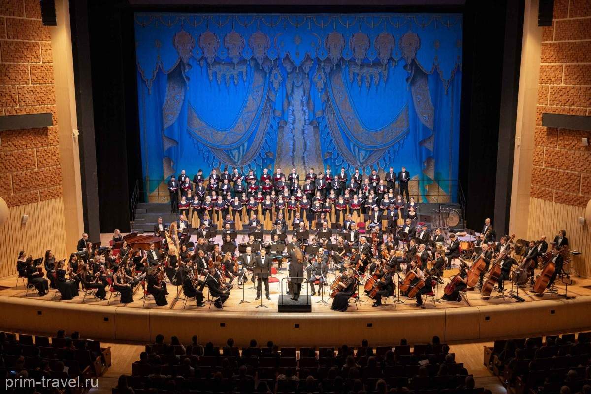 Программу концерта исполнят Симфонический оркестр Приморской сцены под управлением главного дирижёра Павла Смелкова, хор Приморской сцены под управлением главного хормейстера Ларисы Швейковской и солисты оперной труппы театра.