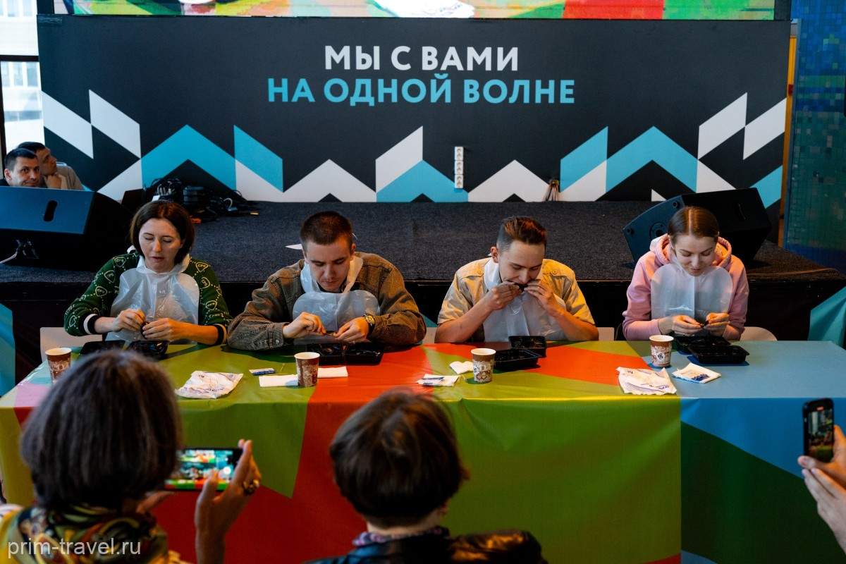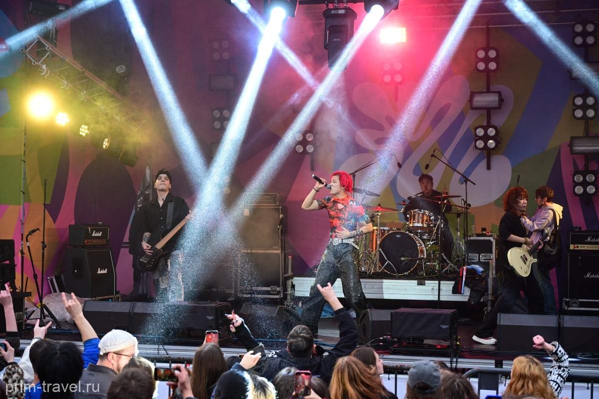 Несмотря на переменчивую погоду — шквалистый ветер и дождь сменялись жаркими лучами солнца — площадка Общественно-культурного центра «Океан» оставалась полна людьми. Зрители пришли поддержать любимых исполнителей, принять участие в конкурсах на скоростное поедание мидий, оценить «модные» импровизации приморских дизайнеров и выбрать победителей танцевальных баттлов.