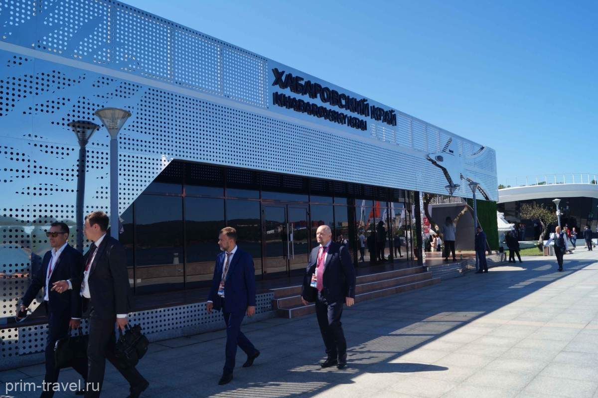 Экспозиция Хабаровского края разместится в двух зданиях, соединенных крытым мостовым переходом. Общая площадь павильона в футуристическом стиле составит 550 квадратных метров. Внутреннее пространство первого этажа основного здания будет поделено на пять ключевых зон. Отдельное внимание будет уделено теме развития острова Большой Уссурийский – совместной трансграничной территории России и Китая.