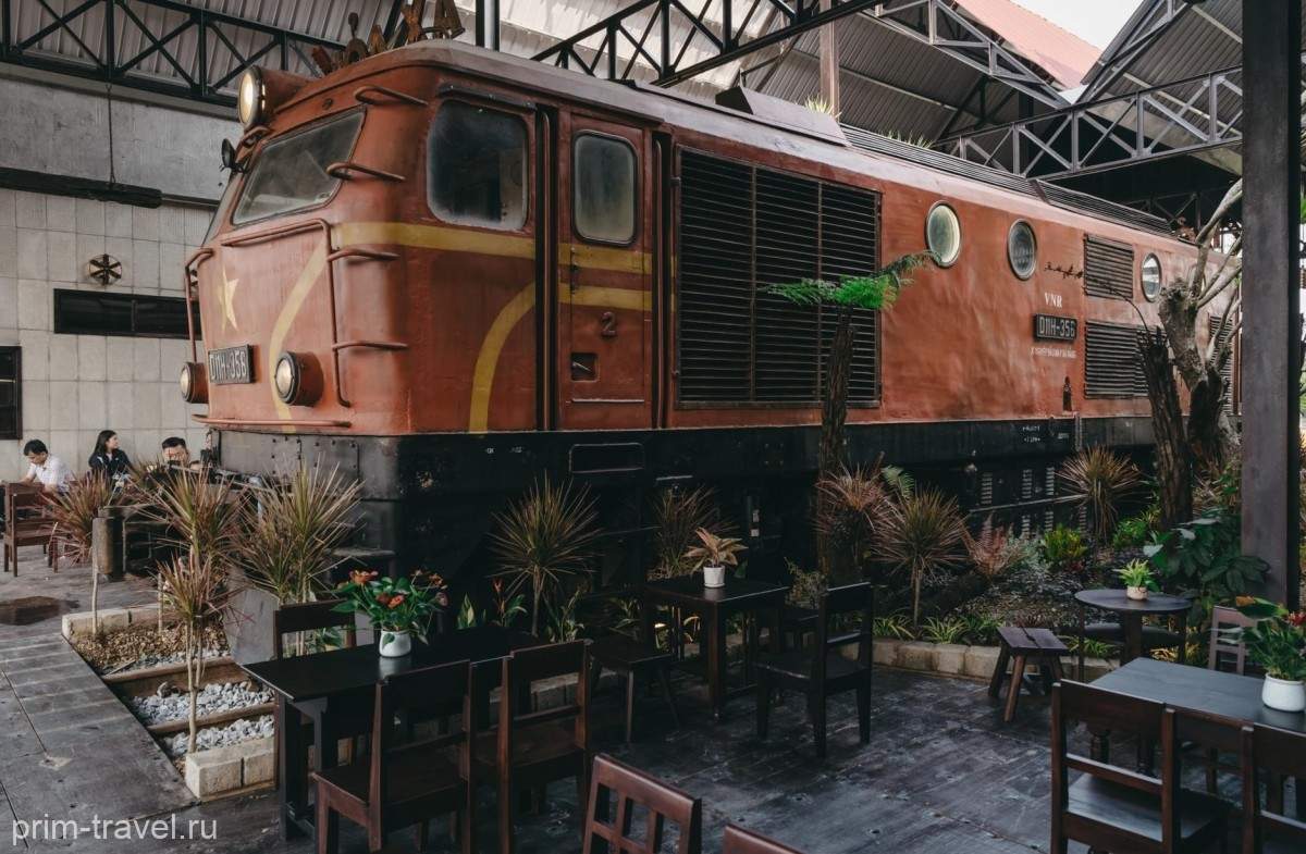 Это кафе стало настоящей сенсацией благодаря тому, что в качестве центрального элемента интерьера использован старый паровоз, расположенный на территории вокзала Хюэ. Дополняет впечатления местная кухня