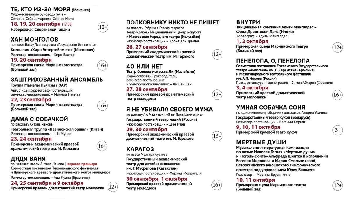 ПРОГРАММА IV МЕЖДУНАРОДНОГО ТИХООКЕАНСКОГО ТЕАТРАЛЬНОГ ФЕСТИВАЛЯ