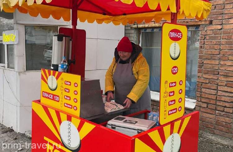 Стоимость корейского пирожка составляет 120 рублей. Первый киоск с пян-се открыт по адресу: Владивосток, ул. Снеговая, 4а. Это место находится недалеко от производства и удобно, прежде всего, для подъезда автомобилей.